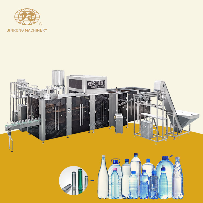 金榮機(jī)械吹灌旋一體機(jī)適用于純凈水,飲用水,礦泉水,果汁飲料,碳酸飲料等的吹瓶、灌裝、封蓋的需求。吹灌封一體機(jī)可灌裝12000-36000瓶/小時。吹灌旋一體機(jī)具有結(jié)構(gòu)緊湊、控制系統(tǒng)完善、操作方便、自動化程度高等特點。