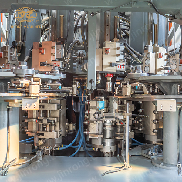 穩(wěn)定的吹瓶機(jī)系統(tǒng):采用底模合模聯(lián)動結(jié)構(gòu),三合一組合吹氣閥。