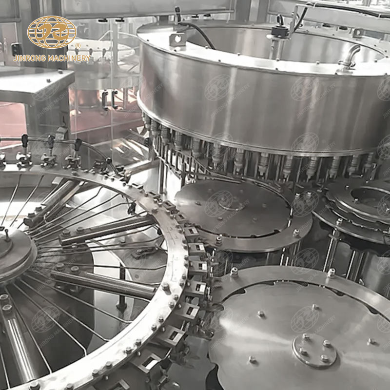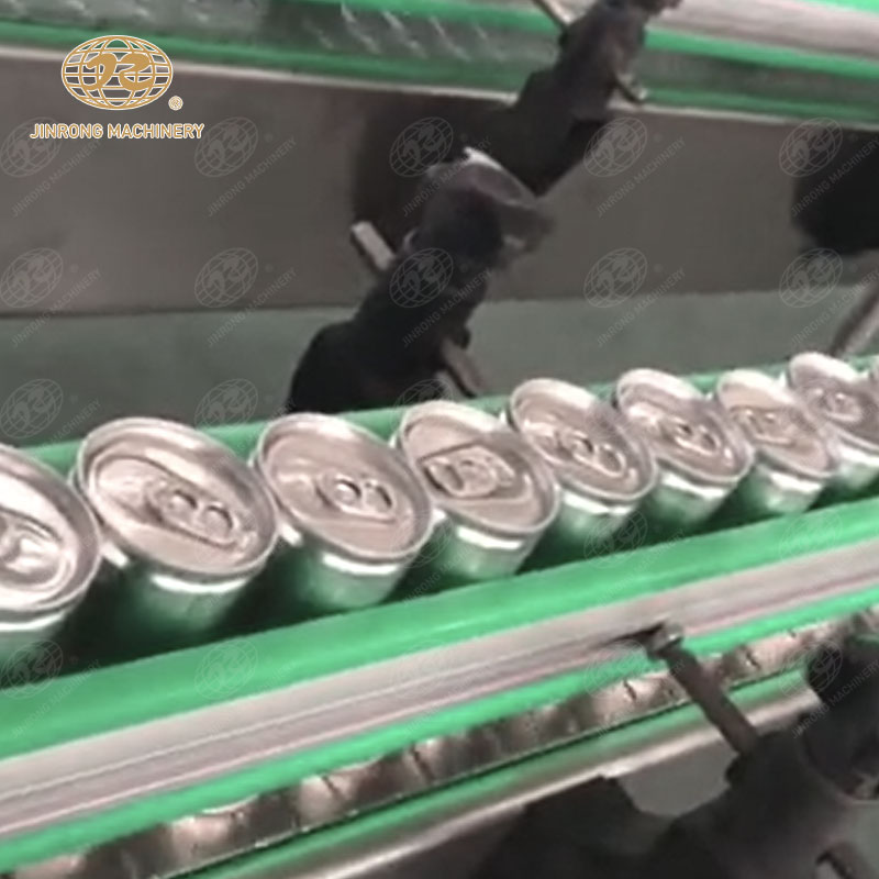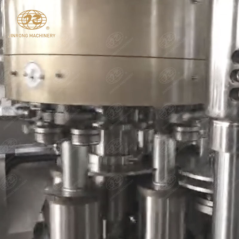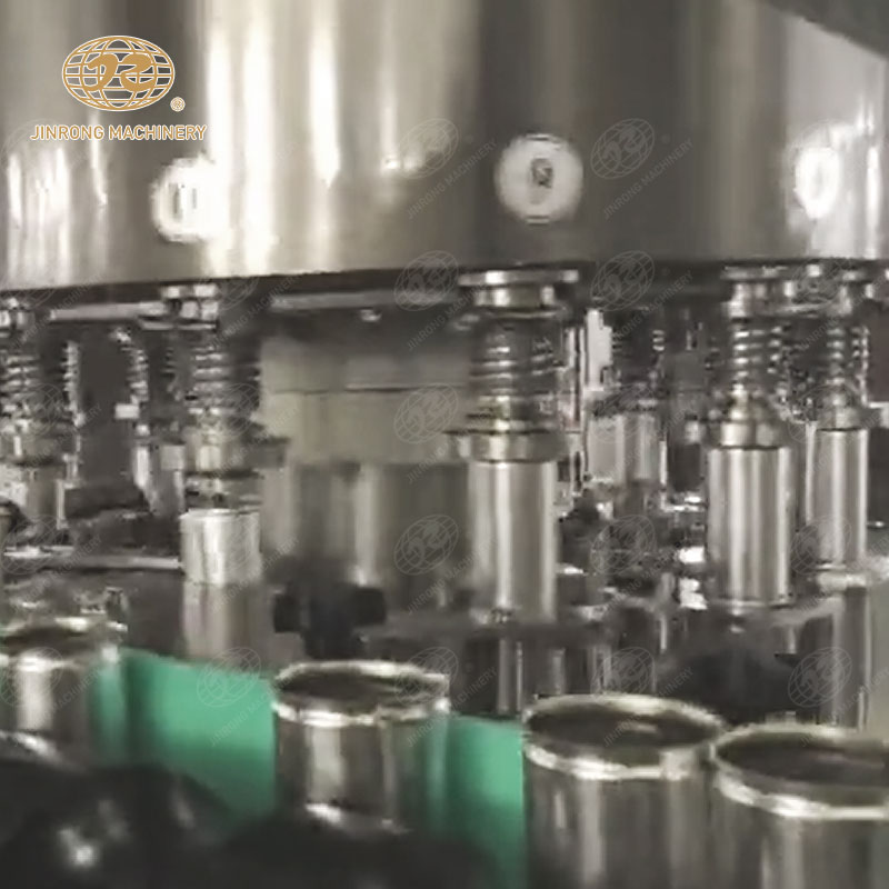 易拉罐依次由進罐螺桿和進罐星輪推到托罐臺上。托罐臺上的空罐上升頂開灌裝閥的密封墊進行灌裝,灌滿的易拉罐被送到輸送帶上,送進封罐機封蓋。封蓋機在凸輪的控制下通過取蓋、蓋翻邊、卷邊等動作完成封蓋后,易拉罐進入實罐輸送系統。