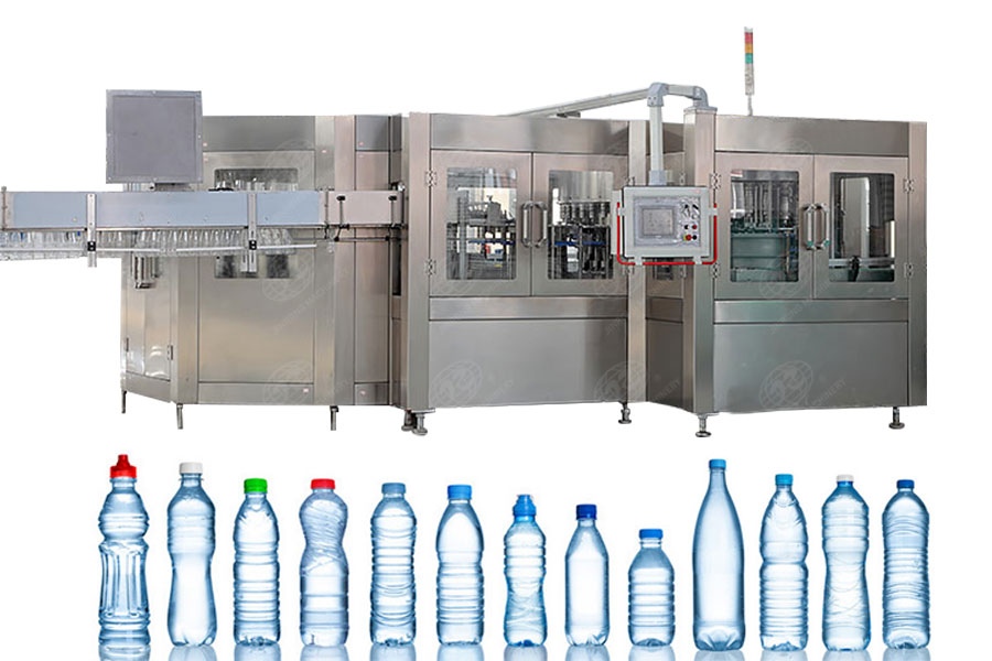飲用水生產線廣泛應用于食品、飲料等行業,通過一系列的自動化操作,將原始水源經過處理、灌裝、密封等工藝步驟,最終生產出符合衛生標準的瓶裝飲用水。飲用水加工生產線的工作流程可以大致分為水處理系統、瓶洗凈系統、灌裝系統、封口系統和包裝系統等幾個主要部分。飲用水灌裝生產線集沖洗、灌裝、旋蓋于一體的全自動灌裝設備,適用于純凈水、礦泉水、飲用水等的灌裝生產。